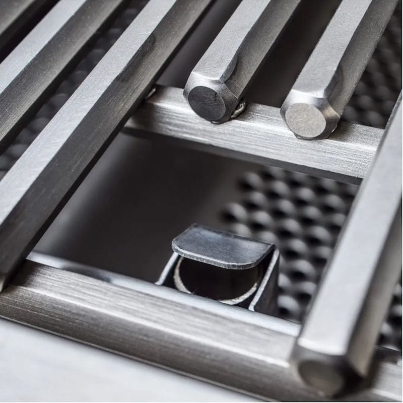 Heavy-duty 12mm flame stabilizing grids cover the entire